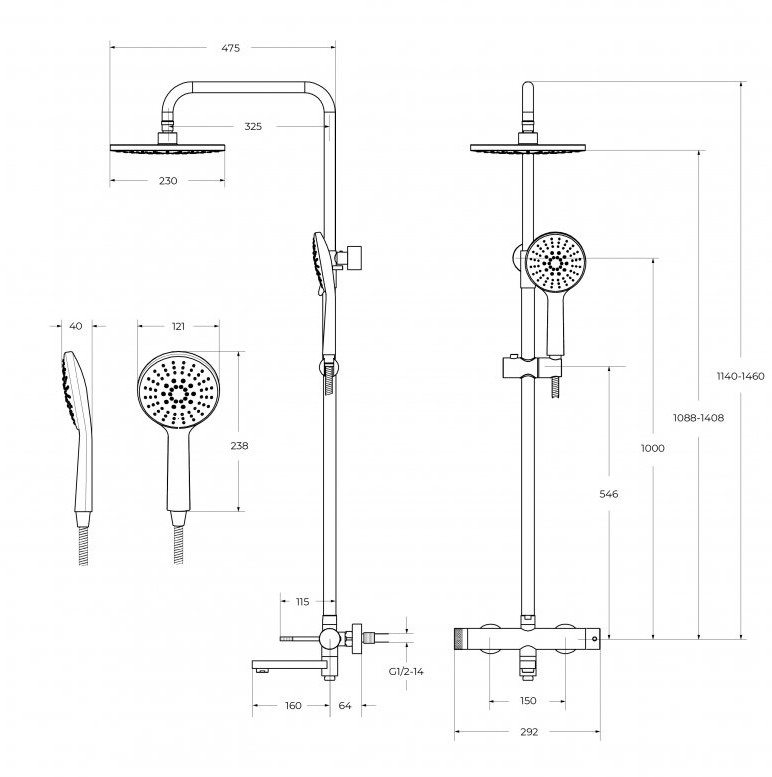 Оснащение: эксцентрики, дивертор, душевой шланг ПВХ длиной 150 см, ручной душ 3-х режимный, верхний душ, смеситель с поворотным изливом