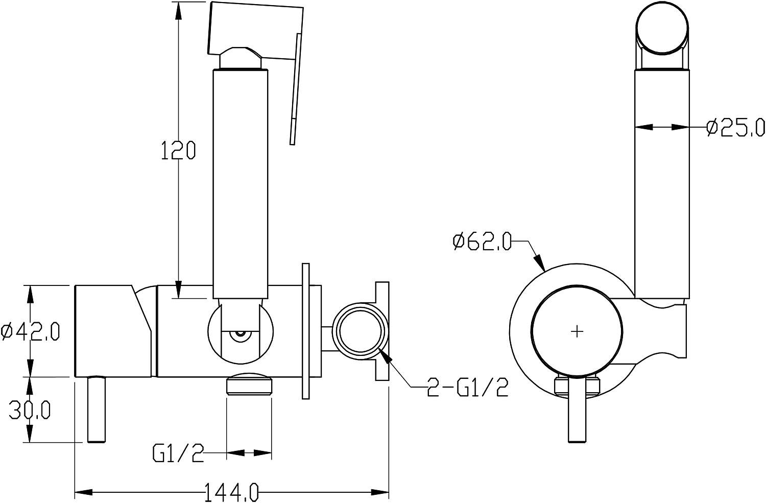 Аксессуары в комплекте: лейка для биде с нажимным механизмом, шланг 1,2 м,