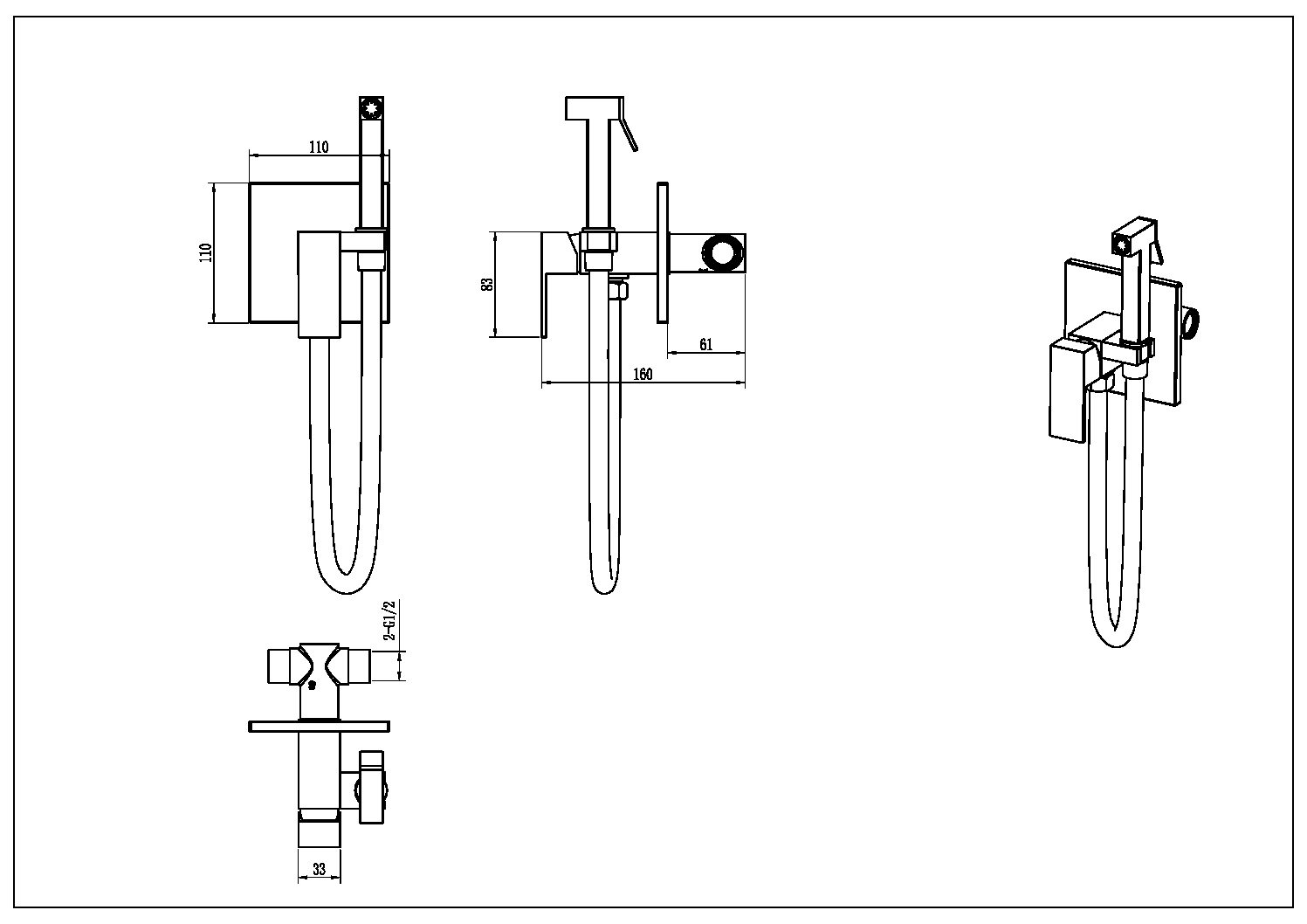 Аксессуары в комплекте: лейка для биде с нажимным механизмом, шланг 1,2 м,