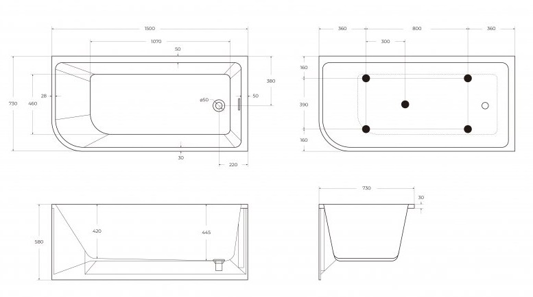 Размер: 1500x730x580 мм; 1700x730x580 мм