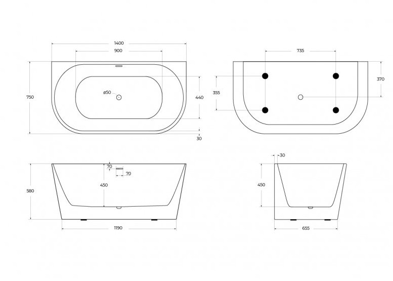 АКРИЛОВАЯ ВАННА BELBAGNO BB710 140X75 СМ