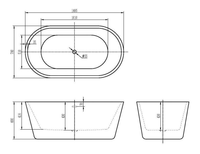 Расположение перелива: по центру