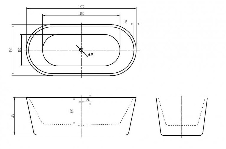 Расположение перелива: по центру
