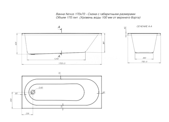 АКРИЛОВАЯ ВАННА AQUANET NEXUS 170X70