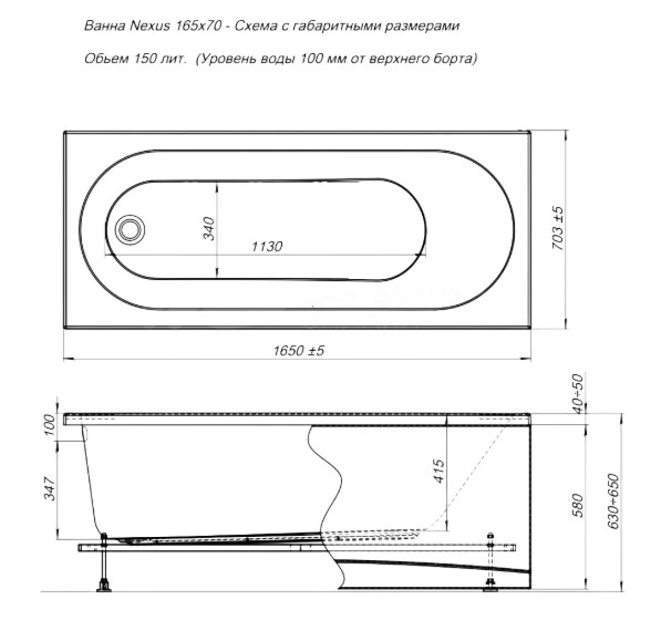 АКРИЛОВАЯ ВАННА AQUANET NEXUS 165X70