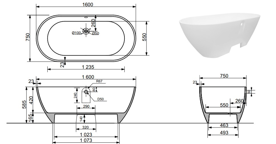 ВАННА ИЗ ЛИТЬЕВОГО МРАМОРА ЭСТЕТ МАЙЯМИ 160X75