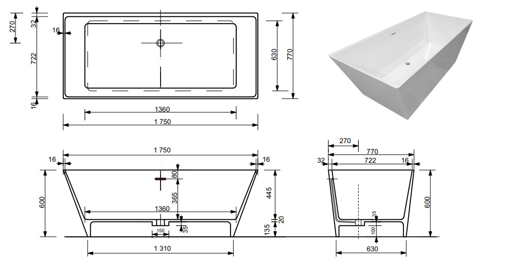 ВАННА ИЗ ЛИТЬЕВОГО МРАМОРА ЭСТЕТ МАНХЭТТЕН 175Х77